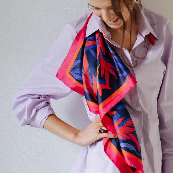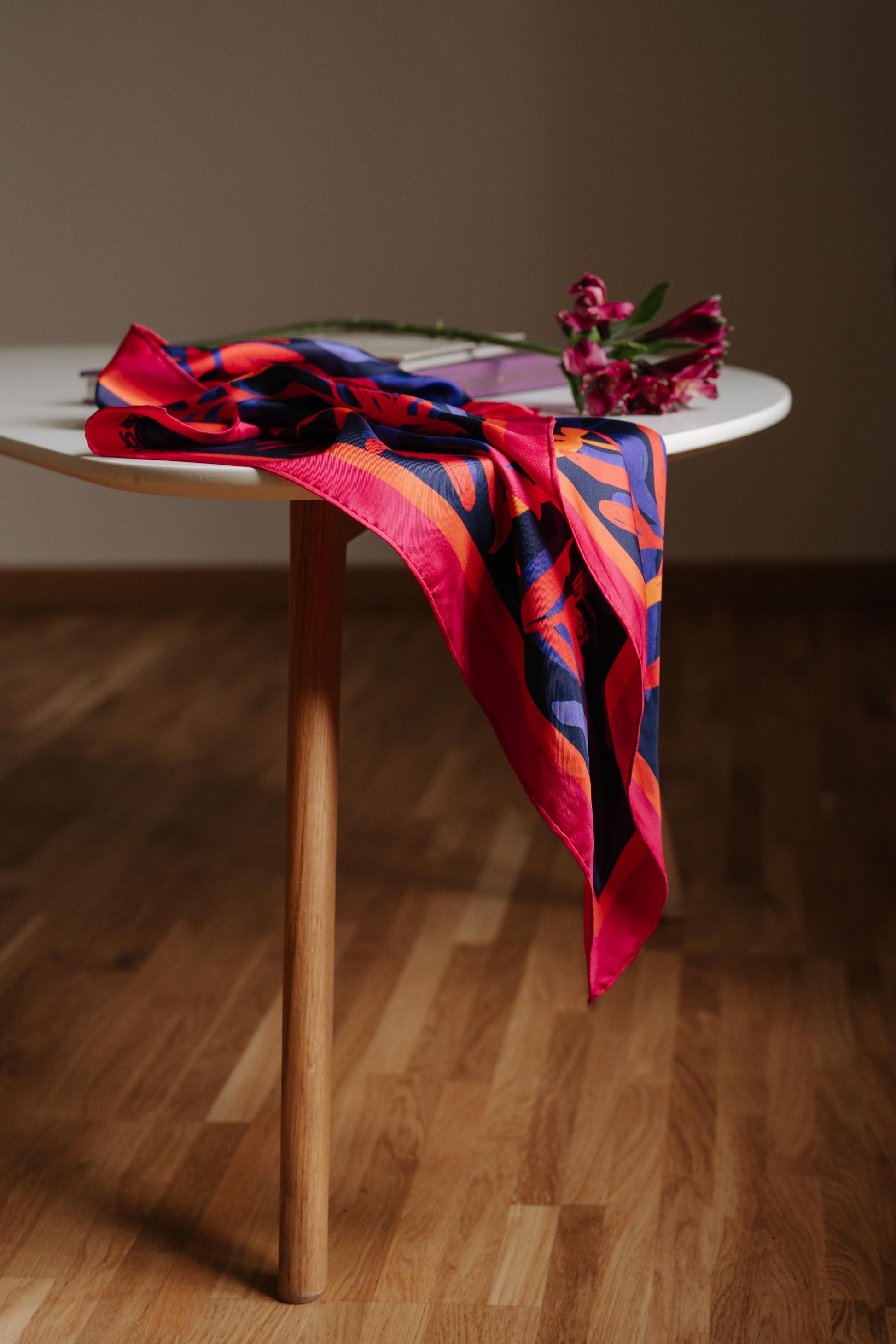 Flaming flowers natural silk scarf