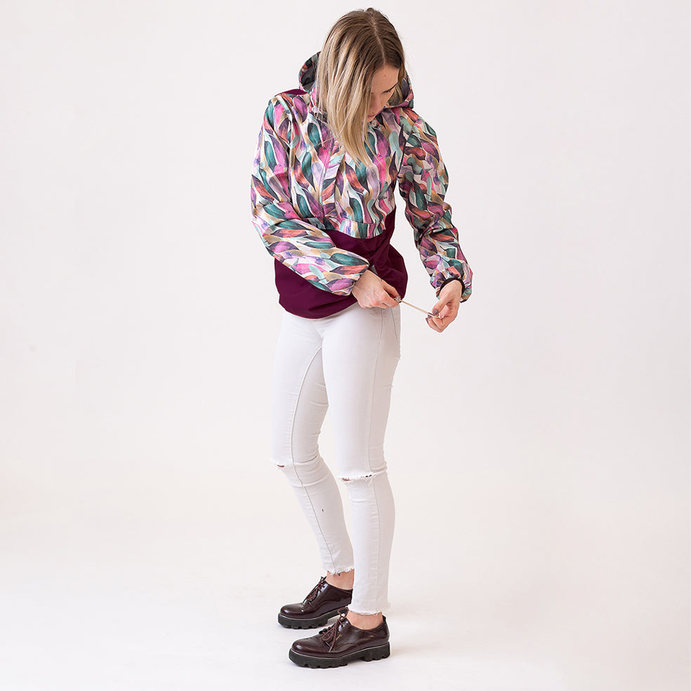 The elastic drawstrings at the hip are meant to protect you from the wind even when you're moving.