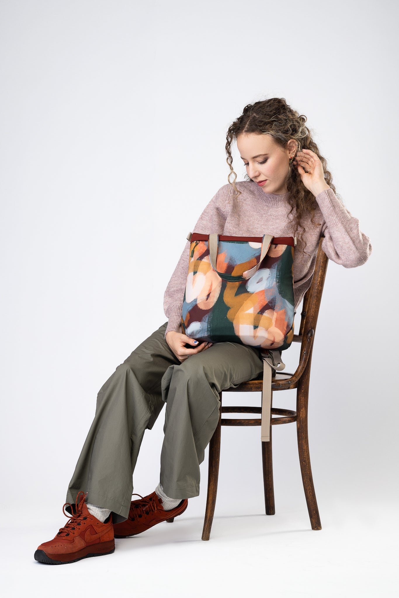 • Inside: 1 zippered + 1 open pocket (15 × 22 cm)