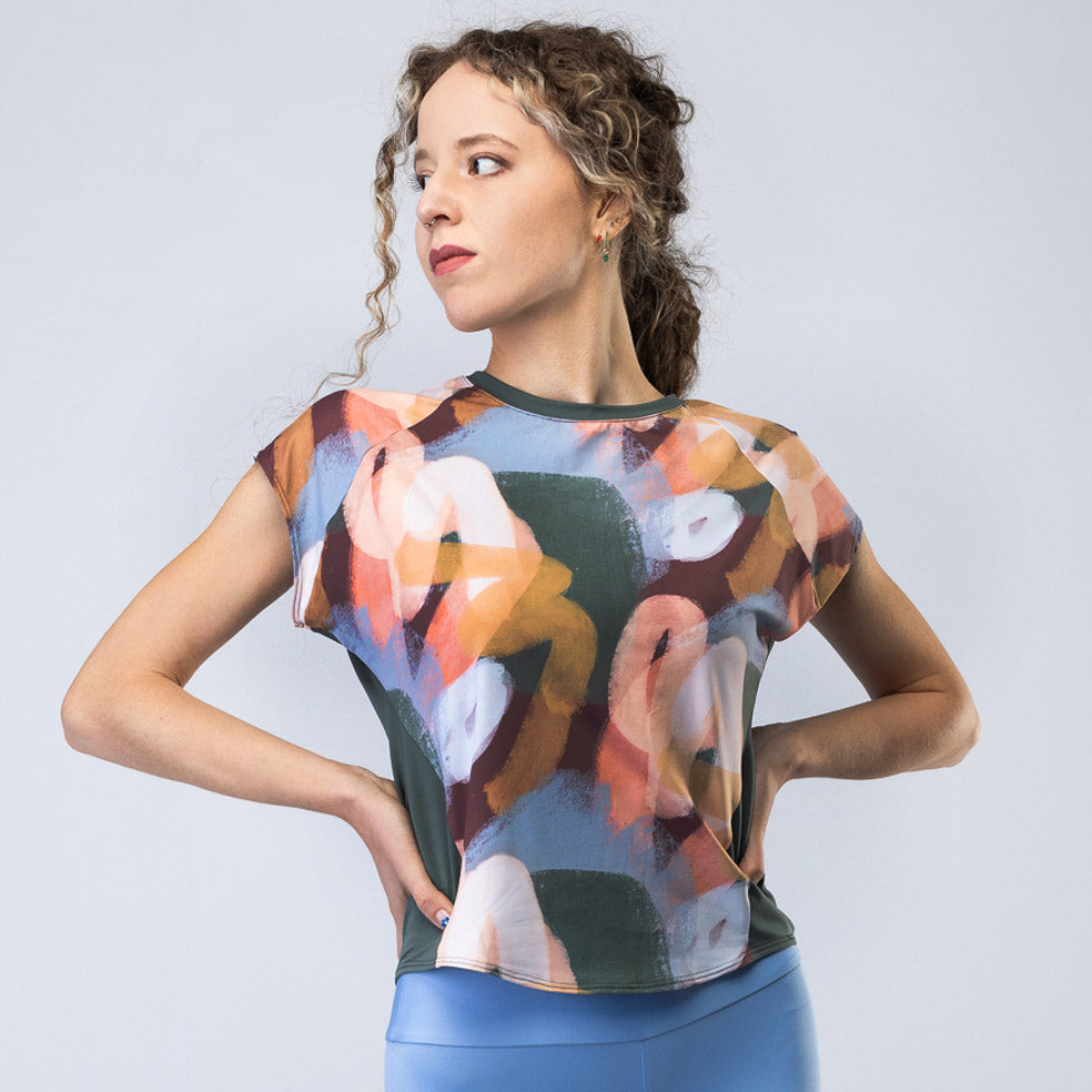 This short-sleeved fitness tee offers a relaxed fit that gently follows your body’s shape while allowing maximum movement. Its flattering design visually slims the waist, making it both functional and stylish. Perfect for any activity that requires flexibility and comfort.