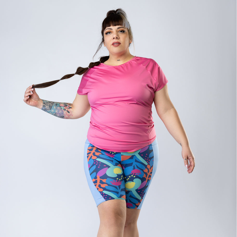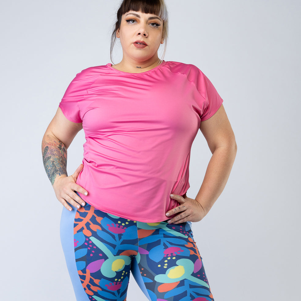 This short-sleeved fitness tee offers a relaxed fit that gently follows your body’s shape while allowing maximum movement. Its flattering design visually slims the waist, making it both functional and stylish. Perfect for any activity that requires flexibility and comfort.