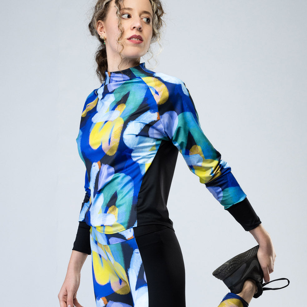 Ez a hosszú ujjú fitnesz felső laza szabásával és könnyű anyagával kényelmes viseletet nyújt, miközben optikailag karcsúsítja a derekat. Ideális választás jóga, pilates vagy szabadtéri sportok során, különösen hűvösebb időben. Szabad mozgást biztosít, miközben elegánsan követi a test vonalát.