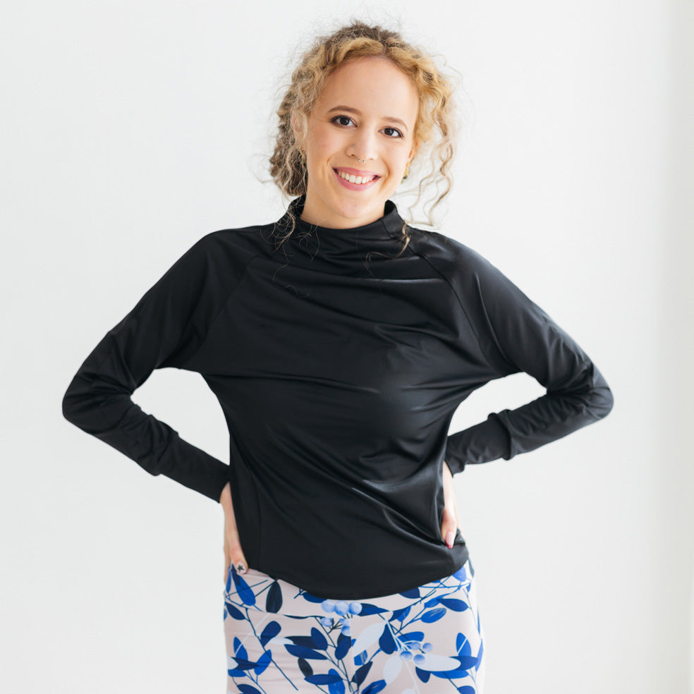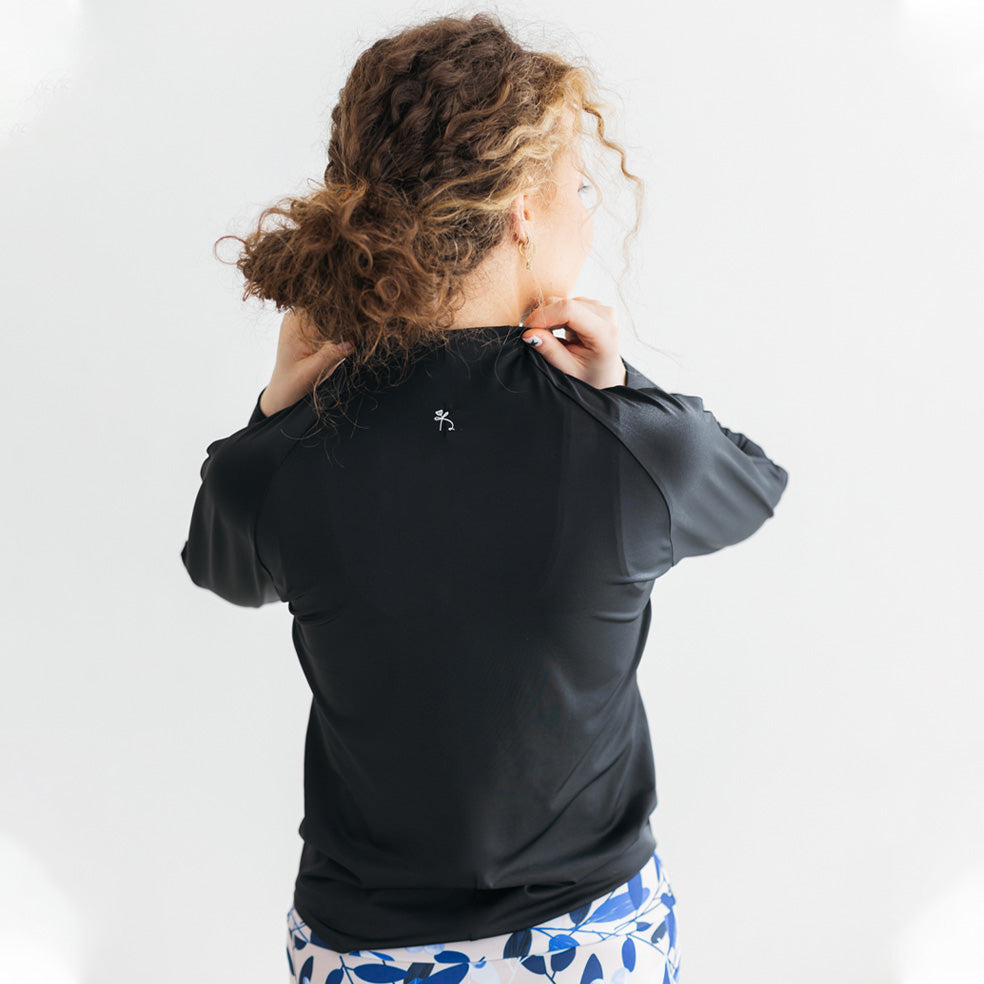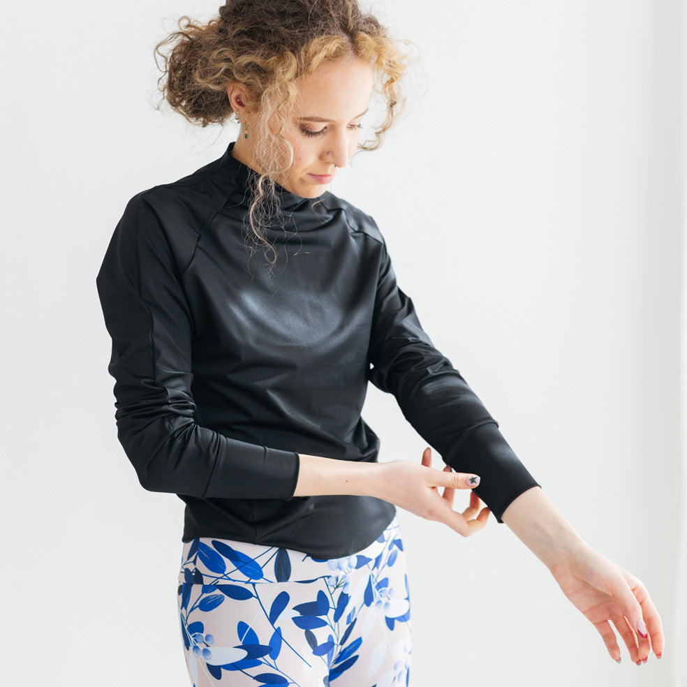 Ez a hosszú ujjú fitnesz felső laza szabásával és könnyű anyagával kényelmes viseletet nyújt, miközben optikailag karcsúsítja a derekat. Ideális választás jóga, pilates vagy szabadtéri sportok során, különösen hűvösebb időben. Szabad mozgást biztosít, miközben elegánsan követi a test vonalát.