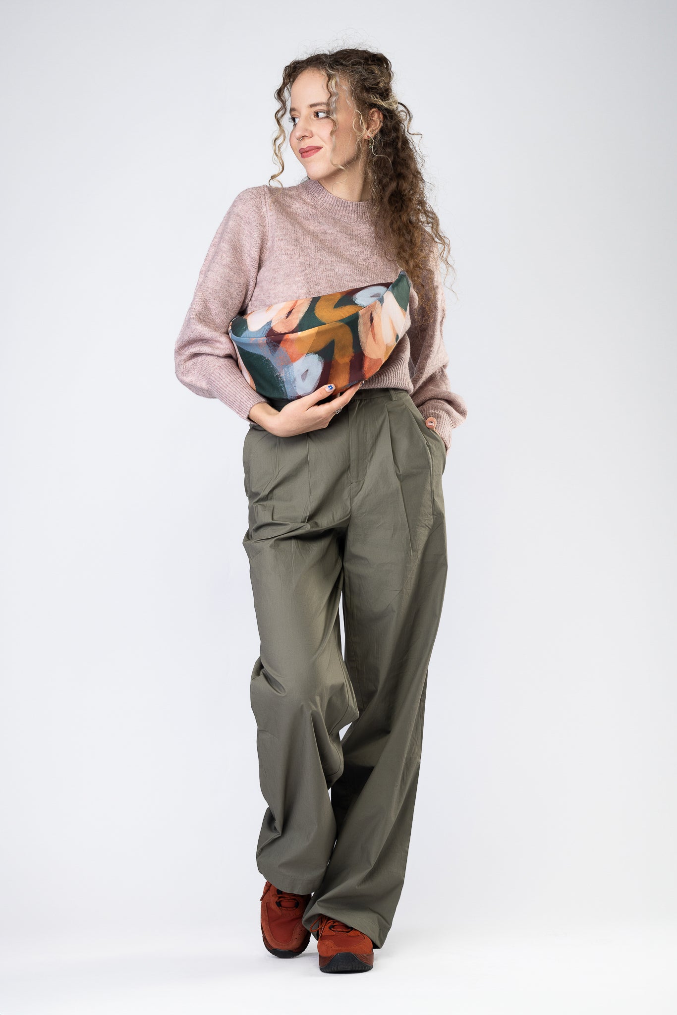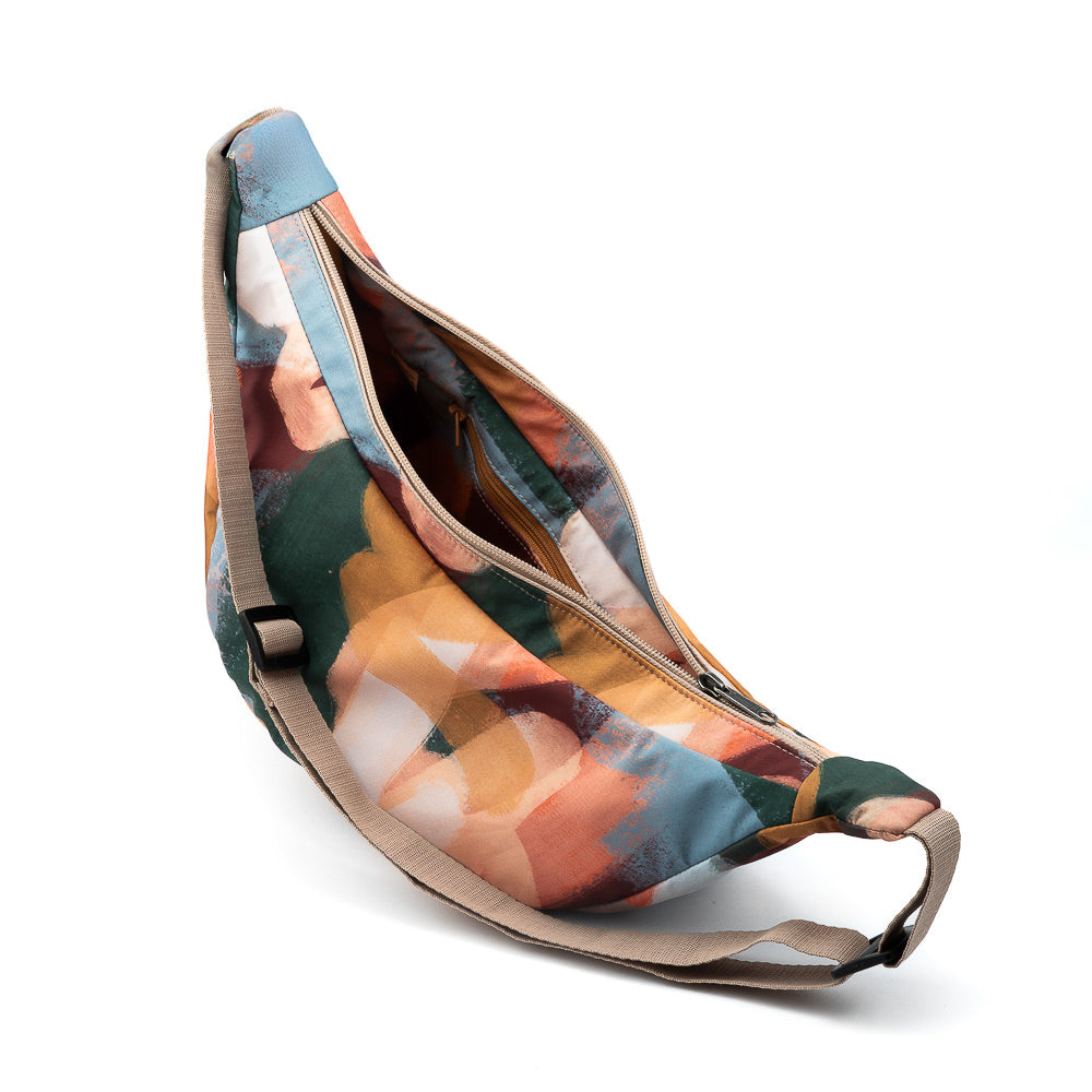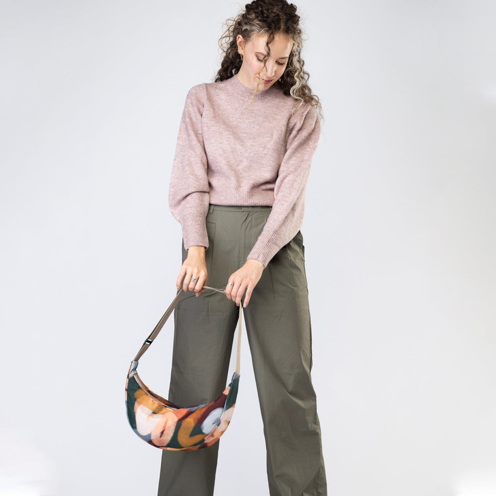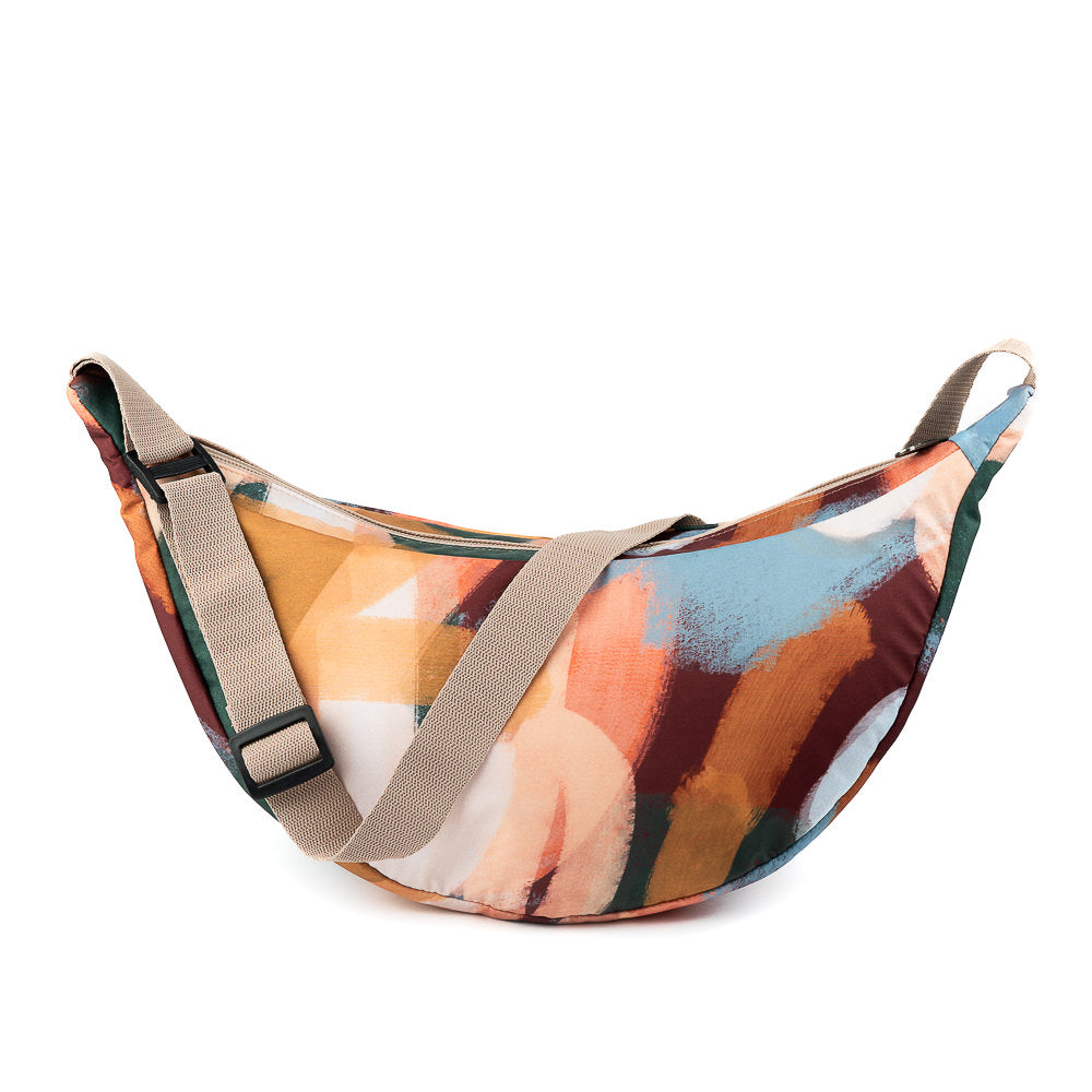Geanta LUNA a fost creată pentru a-ți ușura rutina zilnică, potrivindu-se perfect cu ținute smart casual sau sportive. Datorită formei semilunare, se așează armonios pe corp, iar cureaua ajustabilă o face ideală pentru purtarea pe umăr sau crossbody. Noile elastice rotunde de pe laterale permit reglarea volumului genții.