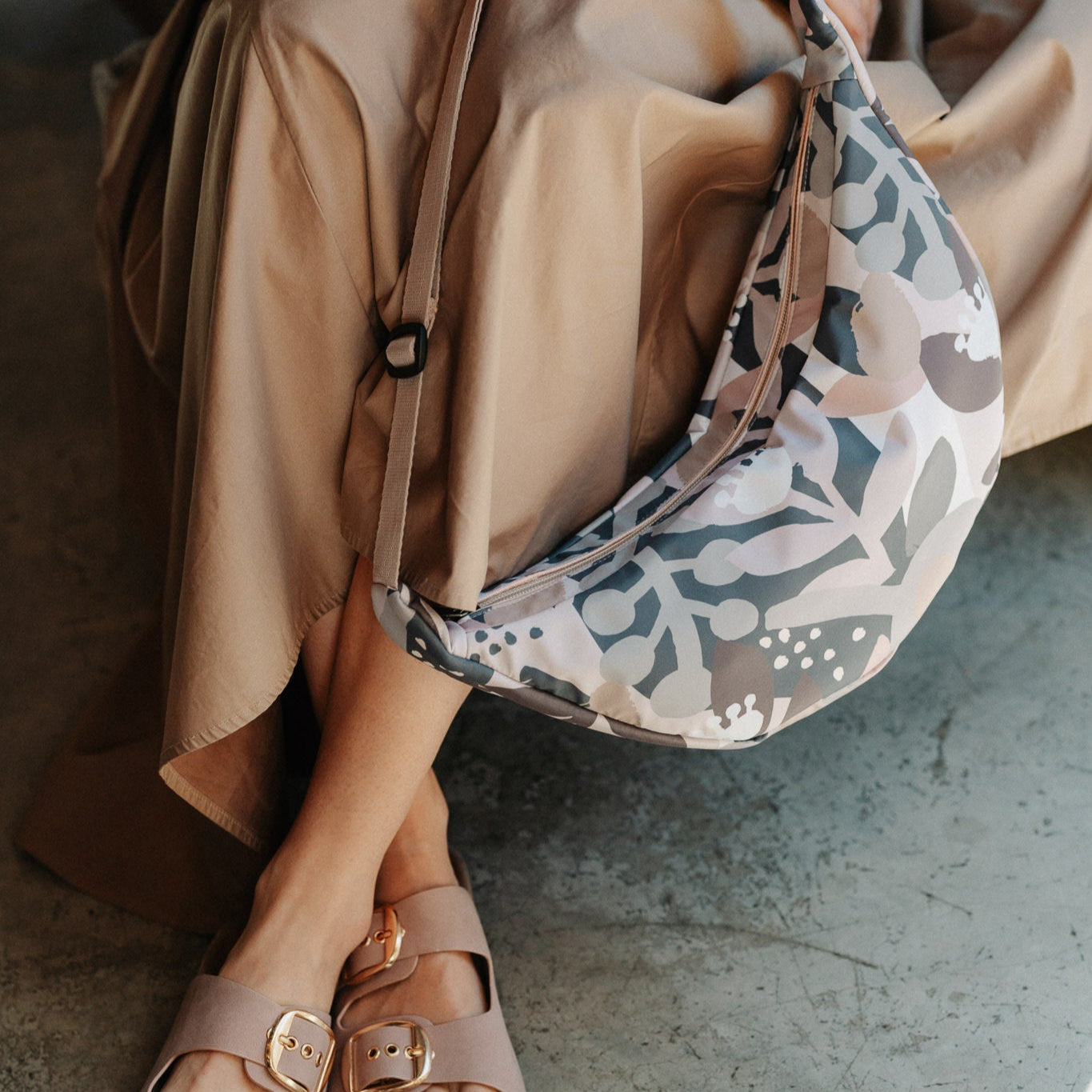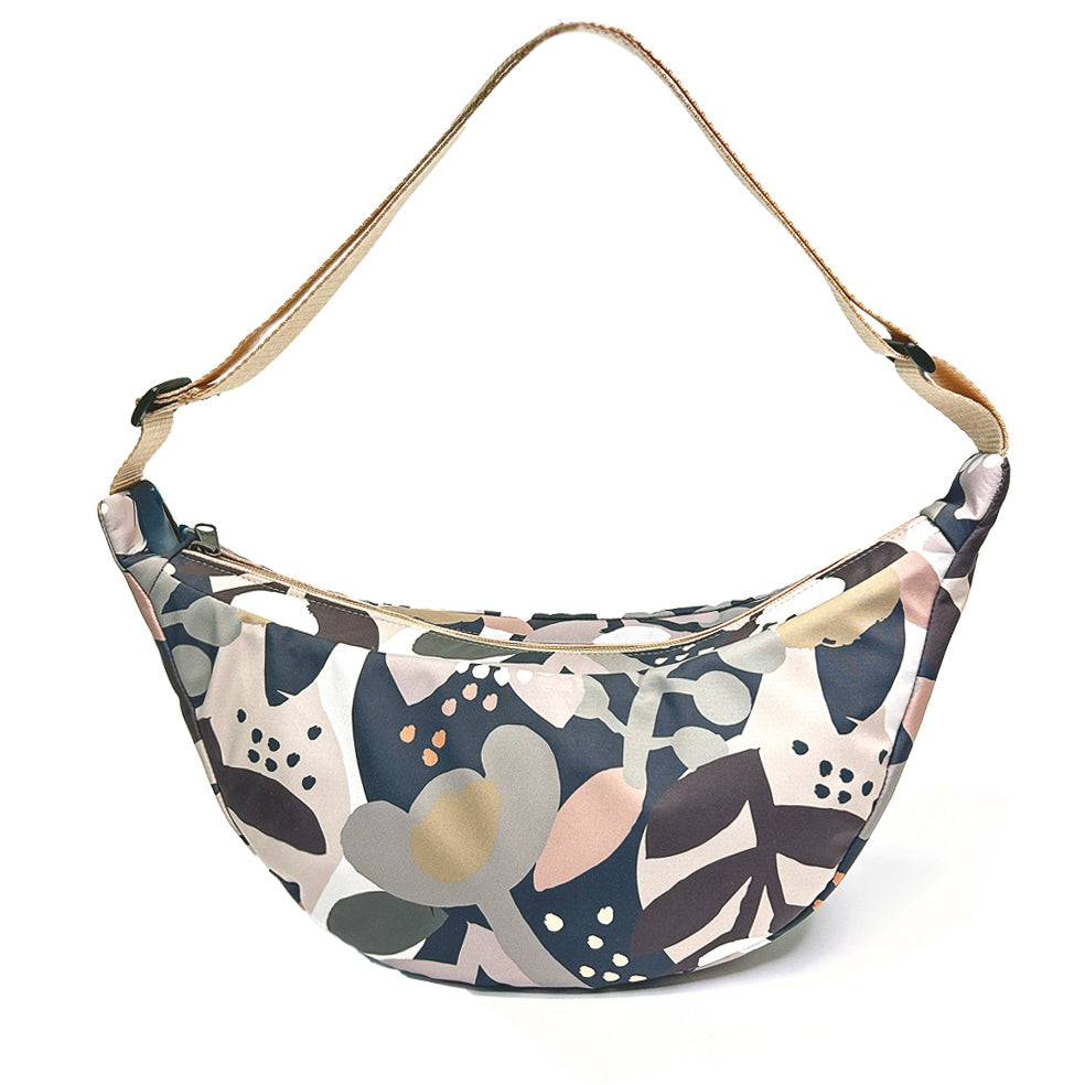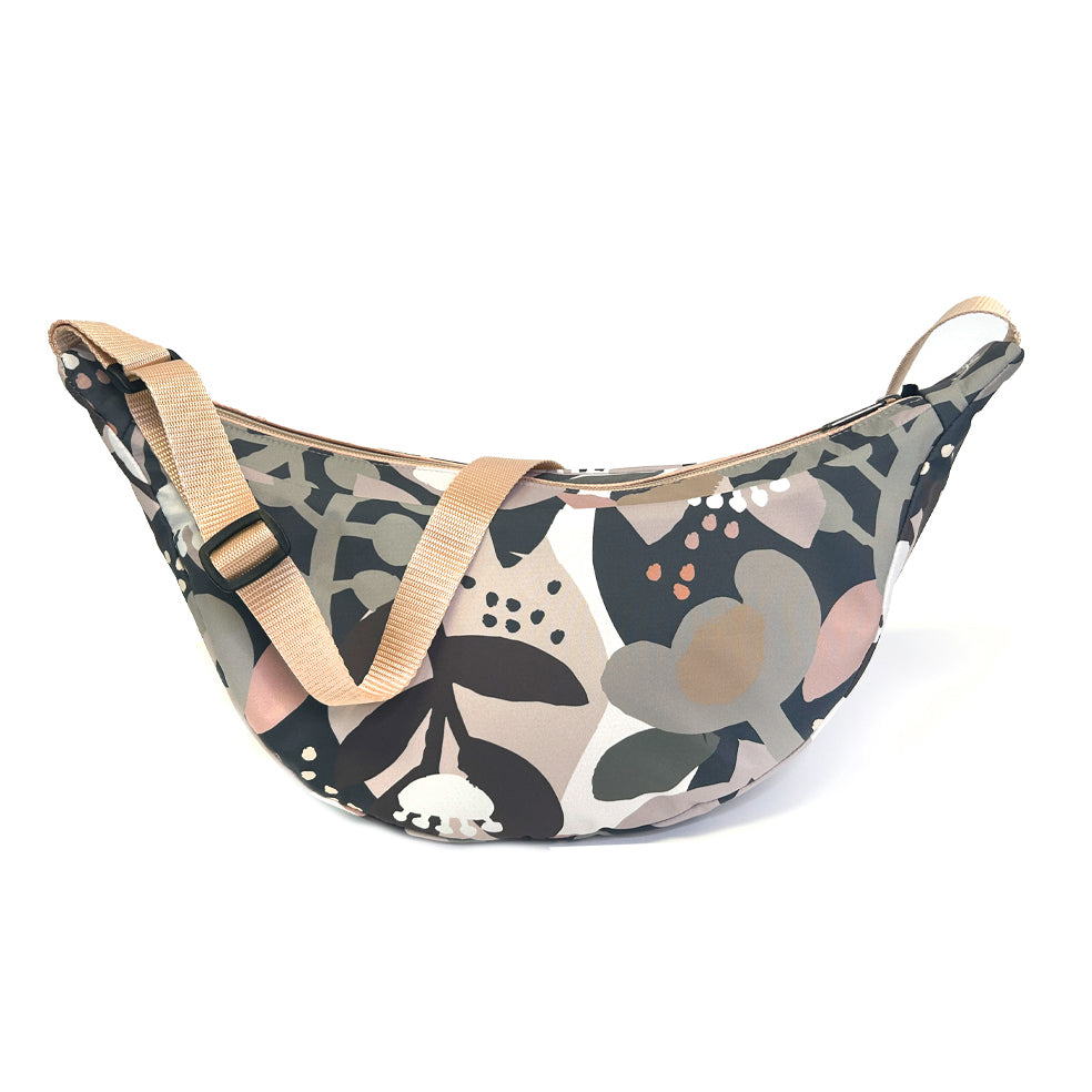 Geanta LUNA a fost creată pentru a-ți ușura rutina zilnică, potrivindu-se perfect cu ținute smart casual sau sportive. Datorită formei semilunare, se așează armonios pe corp, iar cureaua ajustabilă o face ideală pentru purtarea pe umăr sau crossbody. Noile elastice rotunde de pe laterale permit reglarea volumului genții.