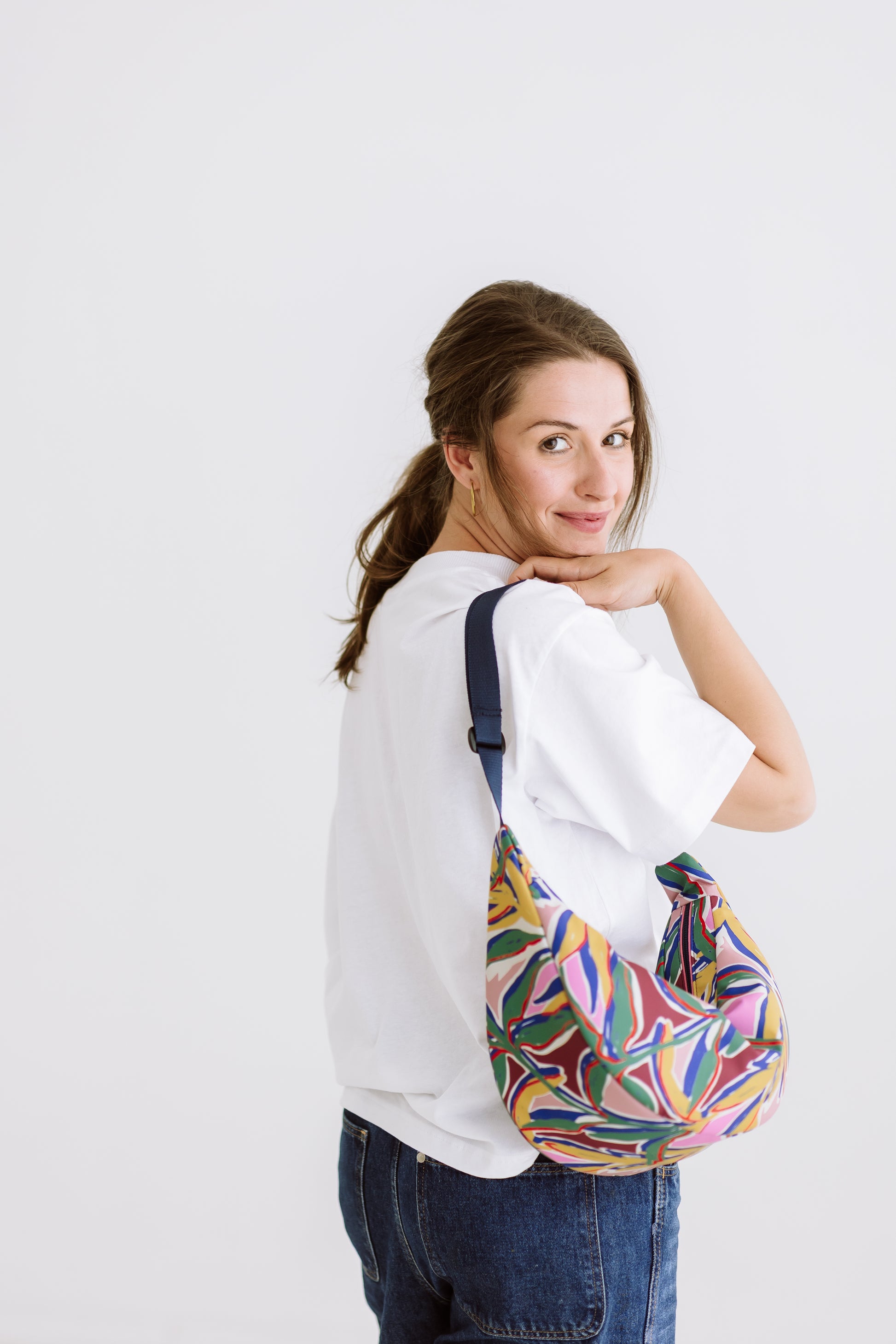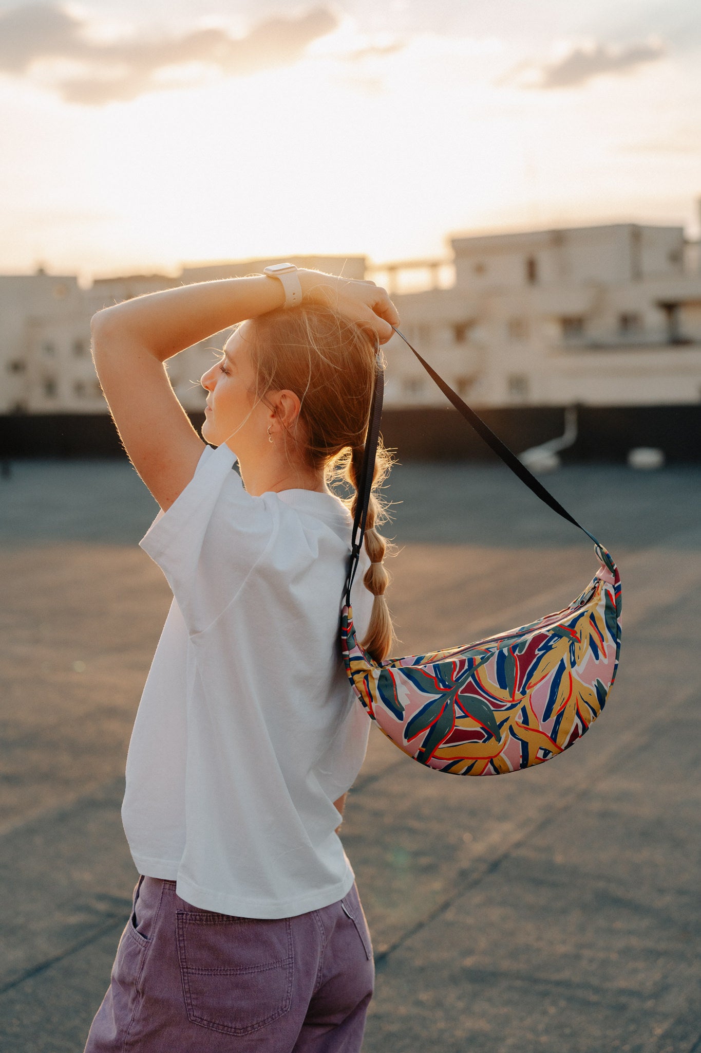 Geanta LUNA a fost creată pentru a-ți ușura rutina zilnică, potrivindu-se perfect cu ținute smart casual sau sportive. Datorită formei semilunare, se așează armonios pe corp, iar cureaua ajustabilă o face ideală pentru purtarea pe umăr sau crossbody.